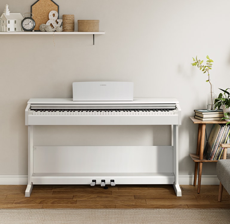 Standard size, 88-key model of the ARIUS digital piano featuring weighted keyboard. The GHS keyboard provides a richly expressive playing feel. Includes compatibility with Yamaha’s Smart Pianist app.